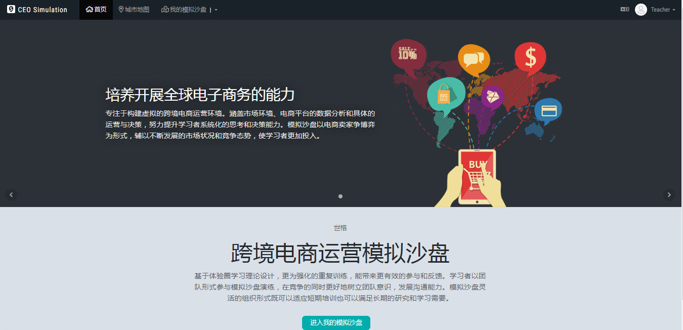 ●以回合制的跨境電商運(yùn)營決策展開,同時(shí)可以容納數(shù)百個(gè)學(xué)生團(tuán)隊(duì),并可以與計(jì)算機(jī)模擬的賣家展開競(jìng)爭(zhēng),靈活適用于各種規(guī)模的教學(xué)組織;